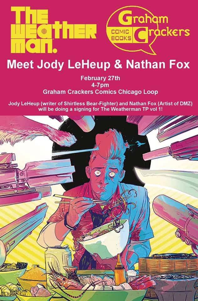 Writer Jody LeHeup and artist Nathan Fox, creators of THE WEATHERMAN, will be signing at Graham Crackers Comics this Wednesday February 27th from 4 PM -7 PM.