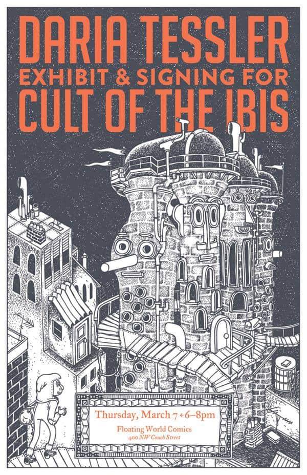 Daria Tessler appears at Floating World Comics on Thursday, March 7, 2019 from 6 PM – 8 PM for the Cult of the Ibis release party and art exhibit.