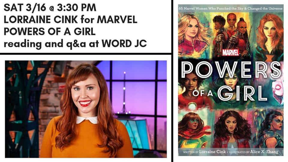 Higher, further, faster, more—that’s the motto of Captain Marvel, aka Earth’s Mightiest Hero, and really all of the superheroes featured in Marvel Powers of a Girl. Join us in Jersey City (hometown of Kamala Khan, alias Ms. Marvel) for a special event featuring Lorraine Cink, comedian and author of Powers of a Girl. Costumes not required, of course, but certainly encouraged.