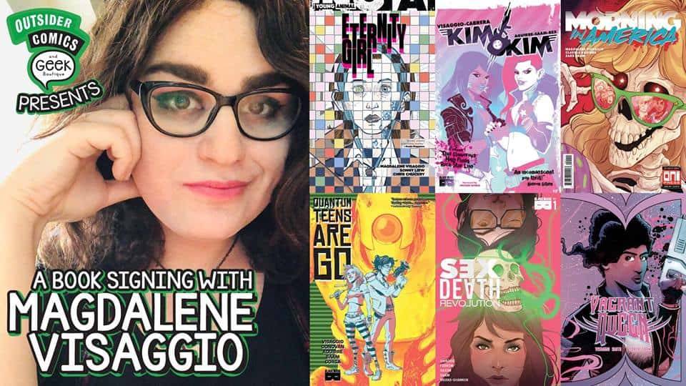 Writer Magdalene Visaggio, writer of KIM & KIM, QUANTUM TEENS ARE GO, ETERNITY GIRL, VAGRANT QUEEN, SEX DEATH REVOLUTION, and the upcoming series MORNING IN AMERICA and CALAMITY KATE, appears at Outsider Comics on Thursday, March 14, 2019 from 8 PM – 10 PM.