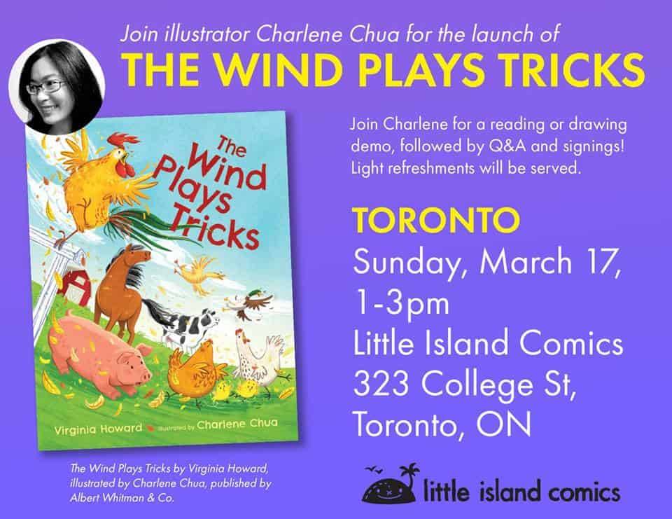 Artist Charlene Chua appears at Little Island Comics on Sunday, March 17, 2019 at 1 PM to sign her new book THE WIND PLAYS TRICKS!