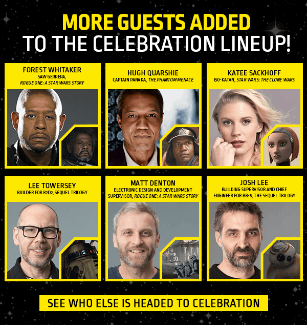 Star Wars Celebration has added further guests for the convention on April 11-15, 2019 in Chicago, IL.