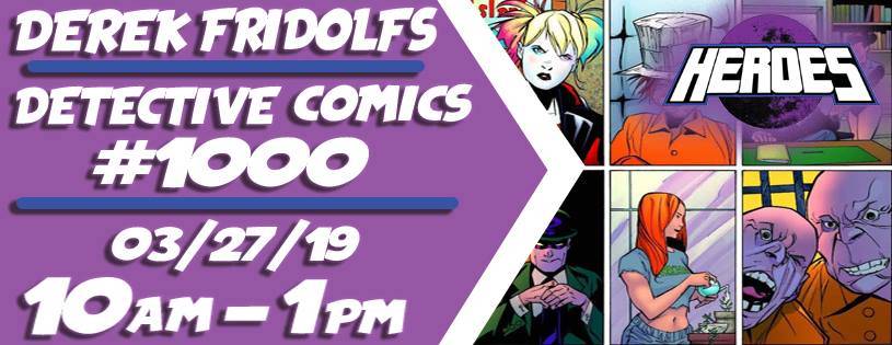 Derek Fridolfs appears at Heroes Comics on Wednesday, March 27, 2019 from 10 AM – 1 PM to sign DETECTIVE COMICS #1000.