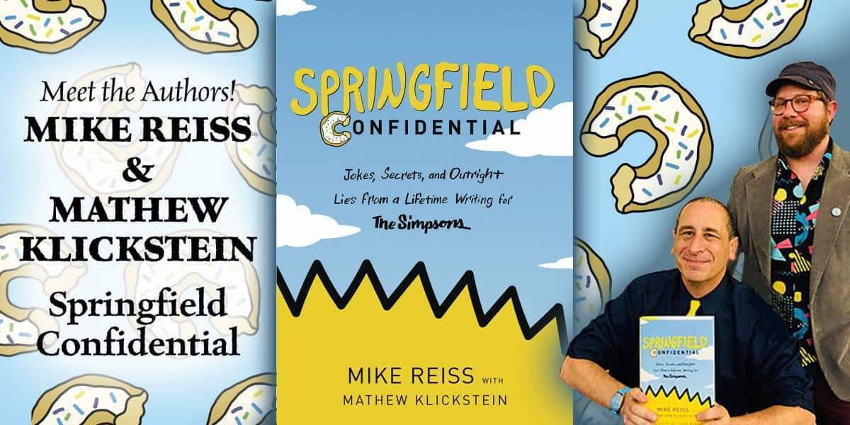 Mike Reiss and Mathew Klickstein appear at Tattered Cover Book Store on Thursday, April 11, 2019 at 7:00 PM to discuss nd sign Springfield Confidential, a best-selling memoir of Reiss’s three decades at The Simpsons.