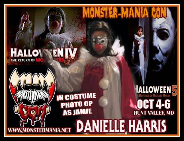 We are thrilled to announce that DANIELLE HARRIS will be doing a special IN-COSTUME PHOTO OP as JAMIE LLOYD in the clown costume from HALLOWEEN IV & HALLOWEEN V at MONSTER-MANIA CON 44 in Hunt Valley, MD the weekend of OCTOBER 4-6!