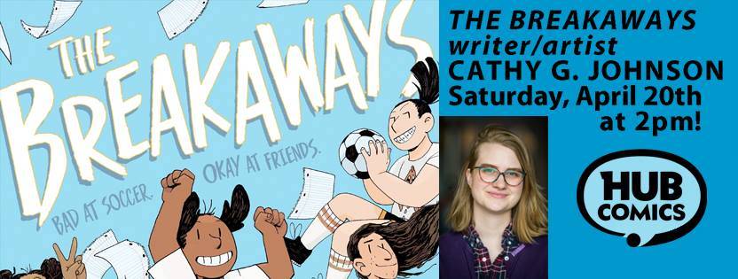 Cathy G. Johnson appears at Hub Comics on Saturday, April 20th at 2 PM to present and sign THE BREAKAWAYS.