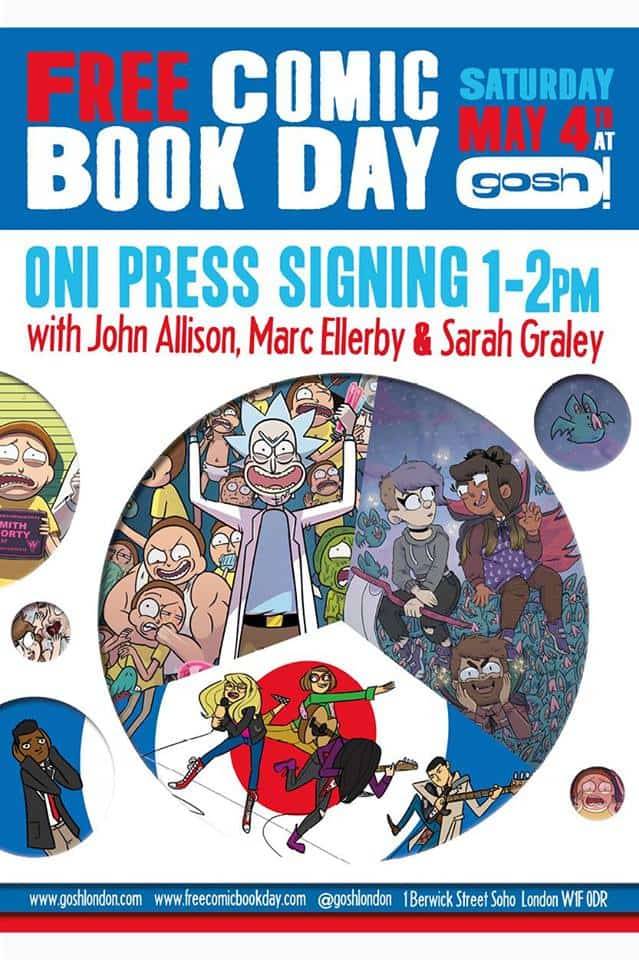 John Allison, Marc Ellerby, and Sarah Graley sign at Gosh Comics to celebrate Free Comic Book Day on Saturday, May 4, 2019!
