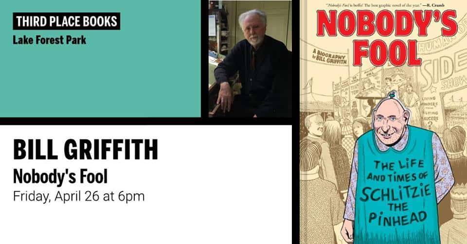 Cartoonist Bill Griffith, creator of Zippy the Pinhead, appears at Third Place Books on Friday, April 26, 2019 at 6:00 PM to discuss and sign copies of his new book, Nobody’s Fool – The Life And Times Of Schlitzie The Pinhead.