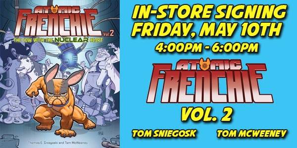 Writer Tom Sniegoski and artist Tom McWeeney sign ATOMIC FRENCHIE at Comicazi on Friday, May 10, 2019 from 4 PM – 6 PM.
