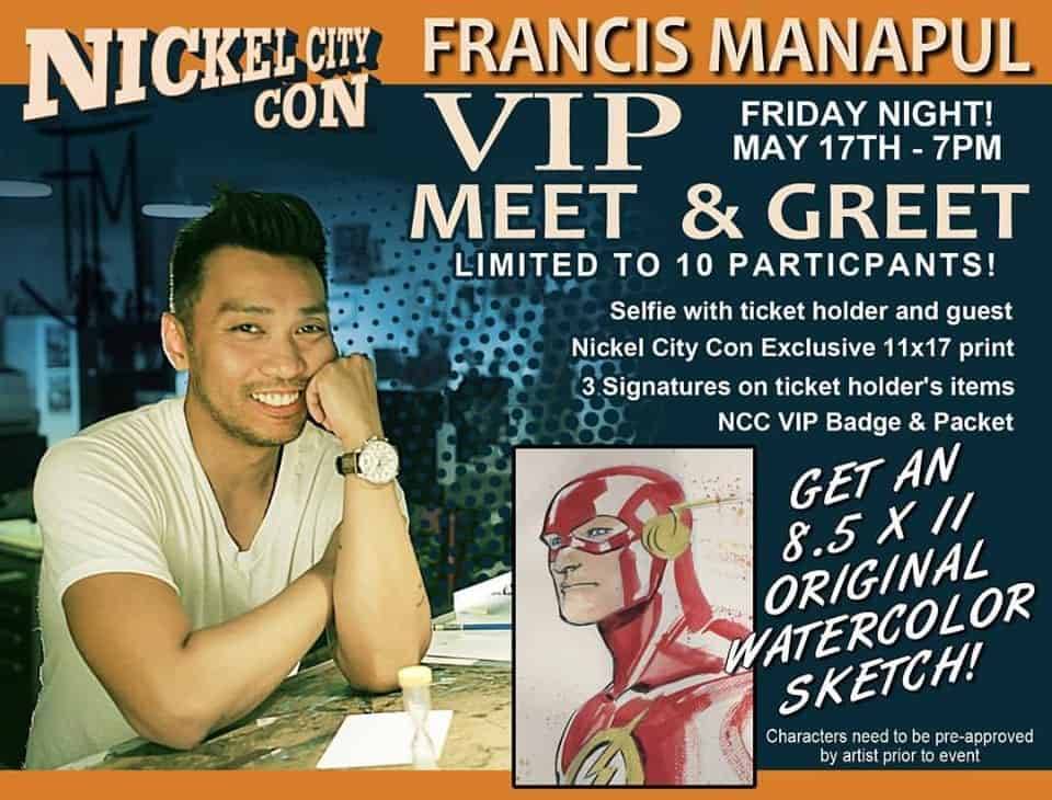 Nickel City Con 2019 offers a once in a lifetime VIP package with superstar comic creator Francis Manapul, which includes an 8.5 x 11 original watercolor sketch and a 3-day flash pass! This item is limited to 10 participants so get yours while you still can! Get tickets hereā¦