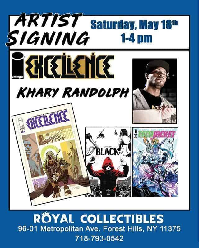 Artist Khary Randolph (Black, TechJacket) appears at Royal Collectibles on Saturday, May 18th from 1 PM – 4 PM for a signing of EXCELLENCE #1 from Image Comics.