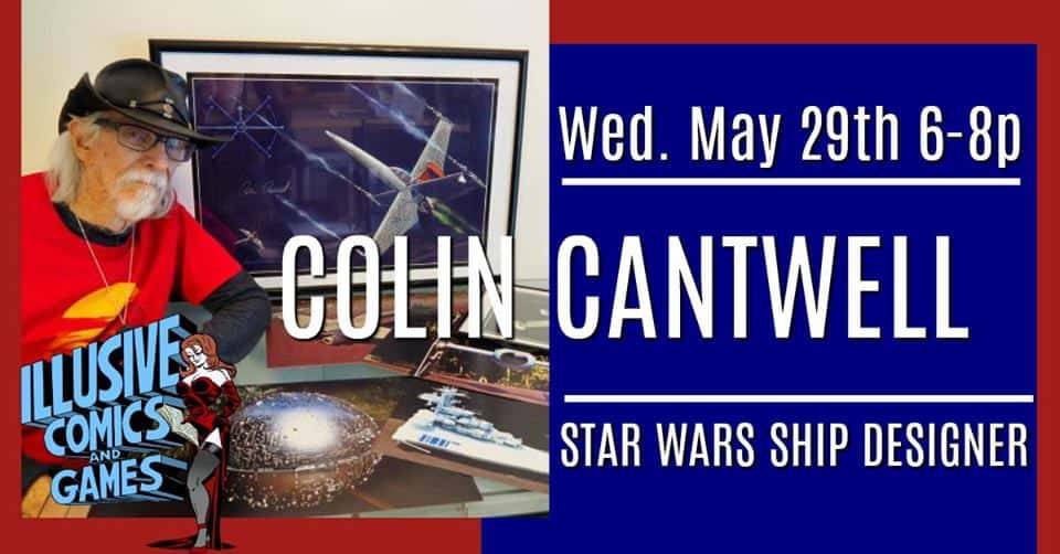 Colin Cantwell, ship designer for the original Star Wars, appears at Illusive Comics on Wednesday, May 29, 2019 at 6 PM for a signing. There will be a presentation by Colin at 6:30pm. Bring your Star Wars ships or comics to get them autographed. Colin charges $25 per autograph.