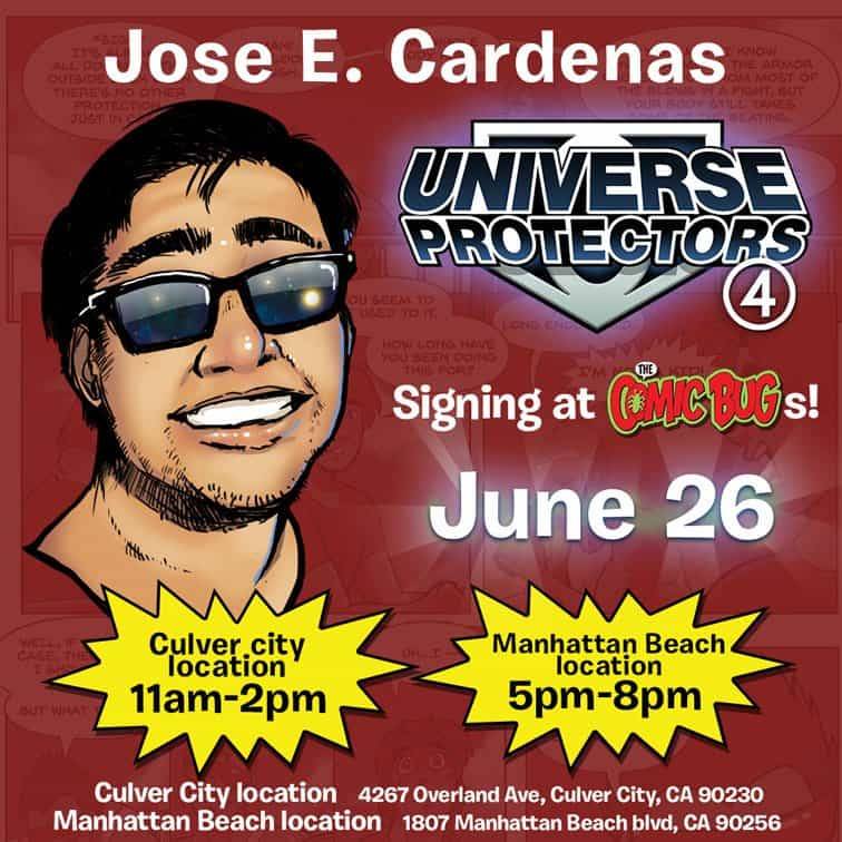 Jose E Cardenas appears at both The Comic Bug shops on Wednesday June 26th signing Universe Protectors #4!