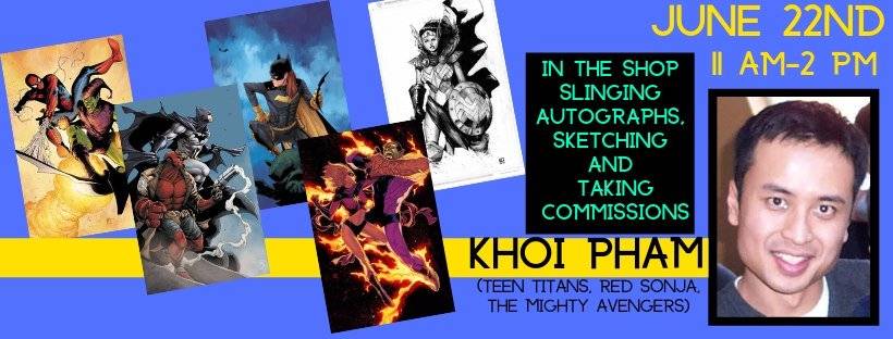 Artist Khoi Pham (Teen Titans, Red Sonja, X-Men Legacy, Mighty Avengers, Cyberforce) appears at Captain Blue Hen Comics this Saturday June 22nd from 11 PM – 2 PM. Khoi will be signing comics, accepting commissions and sketching.