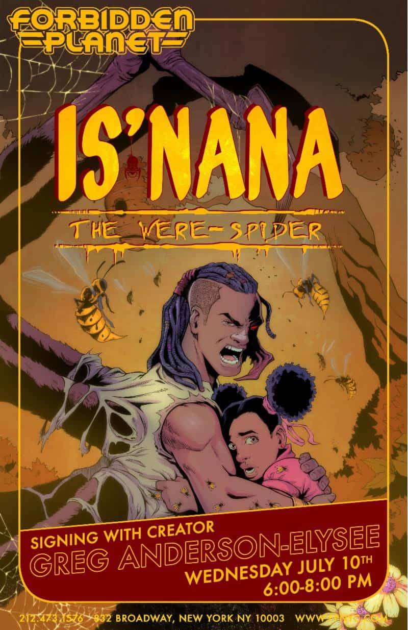 Greg Anderson-Elysee signs Is’nana: The Were-Spider at Forbidden Planet on Wednesday July 10th from 6 PM till 8 PM.