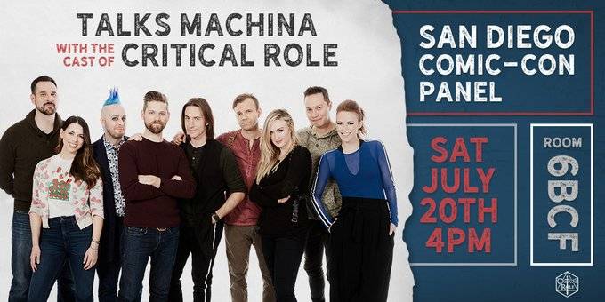The cast of Critical Role (Matthew Mercer, Marisha Ray, Taliesin Jaffe, Liam O’Brien, Travis Willingham, Laura Bailey, and Sam Riegel) appears on a panel hosted by Brian W. Foster for a special community Q&A at San Diego Comic-Con on Saturday, July 20th at 4 PM in Room 6BCF!