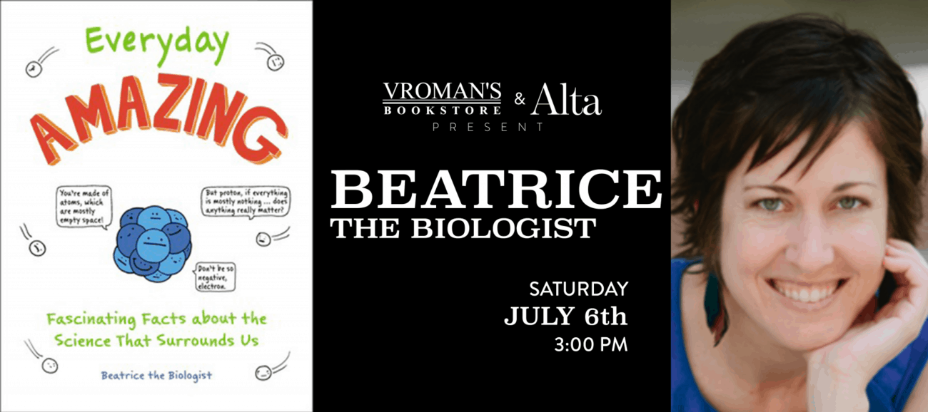 Beatrice the Biologist appears at Vroman’s Books on Saturday, July 6, 2019 at 3:00 PM to discuss and sign Everyday Amazing: Fascinating Facts about the Science That Surrounds Us.