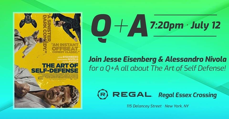 Stars Jesse Eisenberg and Alessandro Nivola appear at Regal Essex Crossing on Friday, July 12, 2019 at 7:20 PM for a Q&A following a screening of THE ART OF SELF-DEFENSE.
