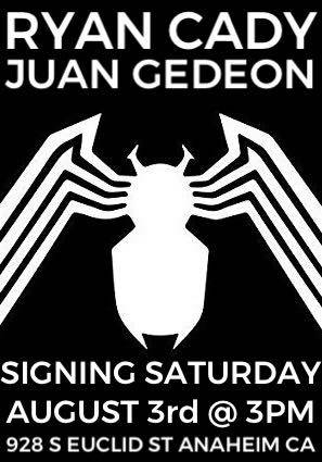 Writer Ryan Cady and artist Juan Gedeon appear at Phat Collectibles on Saturday, August 3, 2019 at 3 PM to sign their respective VENOM projects.