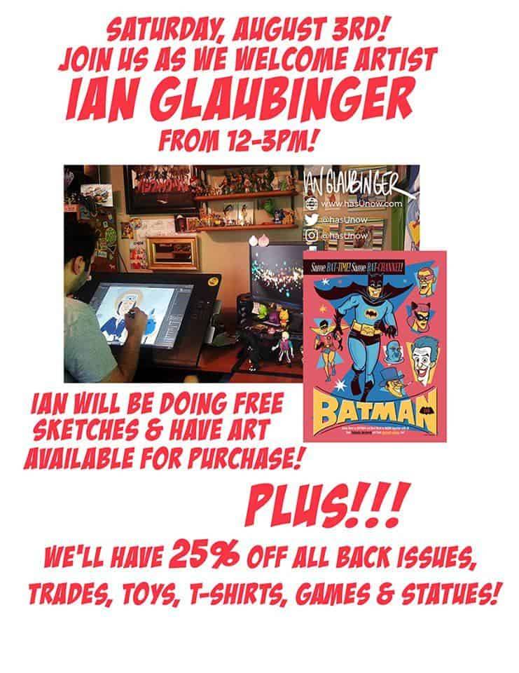 Artist Ian Glaubinger appears at Dewey’s Comic City on Saturday, August 3rd from noon till 3 PM!