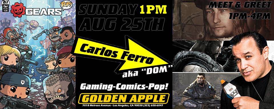 Actor Carlos “DOM” Ferro appears at Golden Apple Comics on Sunday August 25th on Sunday, August 25, 2019 at 1 PM to sign the GEARS OF WAR comic from IDW Publishing.