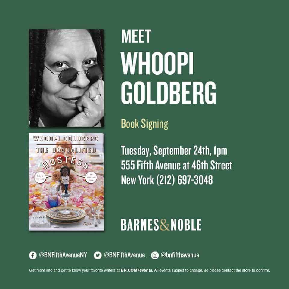 Whoopi Goldberg appears on Tuesday September 24th at 1 PM to sign her new book The Unqualified Hostess!