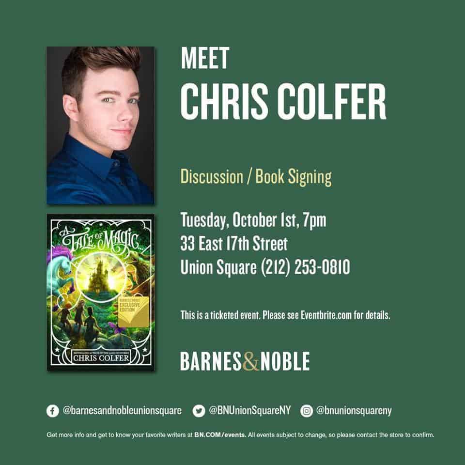 Join Barnes & Noble in welcoming Chris Colfer on Tuesday, October 1st at 7:00 PM. Chris will discuss and sign his new book, A Tale of Magic….
