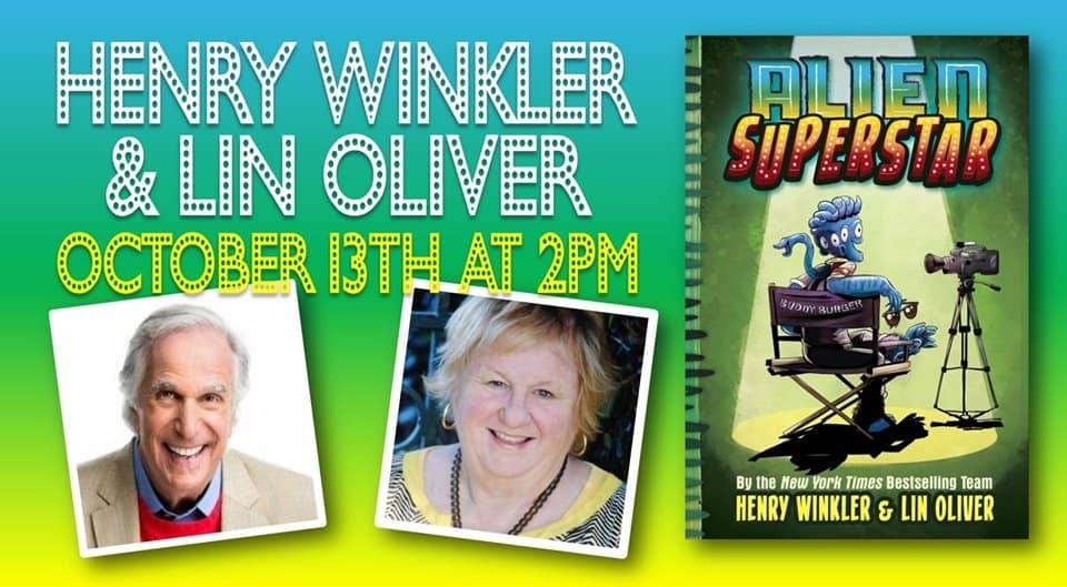 Henry Winkler and Lin Oliver, creators of the Hank Zipzer series, appear at the Grove’s Barnes & Noble on Sunday, October 13th at 2:00 PM to sign their new book ALIEN SUPERSTAR!
