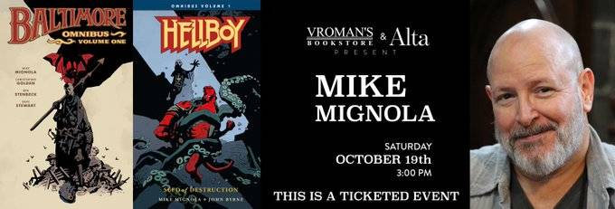 Mike Mignola, creator of Hellboy, appears at Vroman’s Bookstore on Saturday, October 19, 2019 at 3 PM to discuss and sign his new books Baltimore Omnibus Volume 1 and Hellboy Omnibus Volume 1: Seed of Destruction. Get tickets here…
