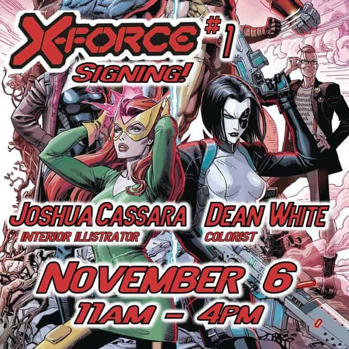 Joshua Cassara and Dean White appear at 4 Color Fantasies on Wednesday, November 6, 2019 from 11 AM – 4 PM to sign X-FORCE #1!