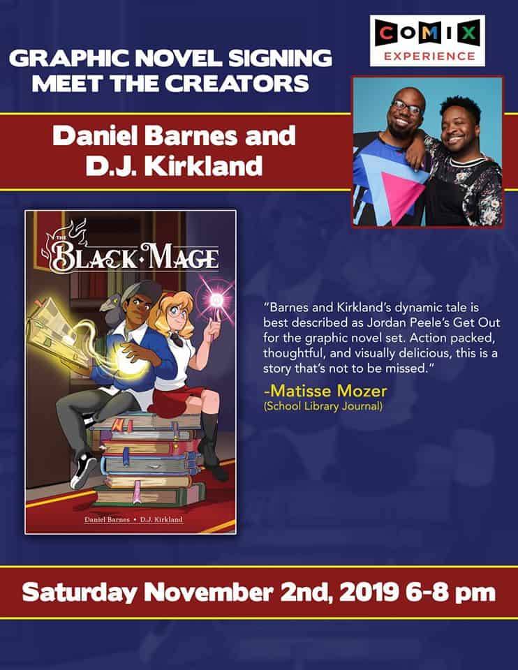 Daniel Barnes and D.J. Kirkland appear at Comix Experience for a signing of their upcoming graphic novel, THE BLACK MAGE on Saturday, November 2nd from 6 PM to 8 PM!