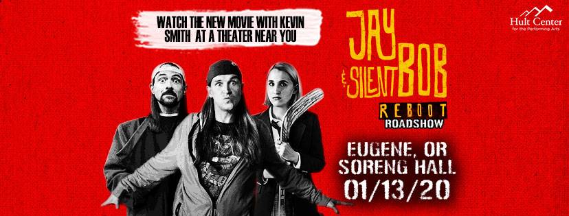 Kevin Smith, writer/director of Clerks, Mallrats, Chasing Amy, Dogma, and more, appears at the Hult Center on Monday, January 13, 2020 at 7 PM for a screening of Jay and Silent Bob Reboot!