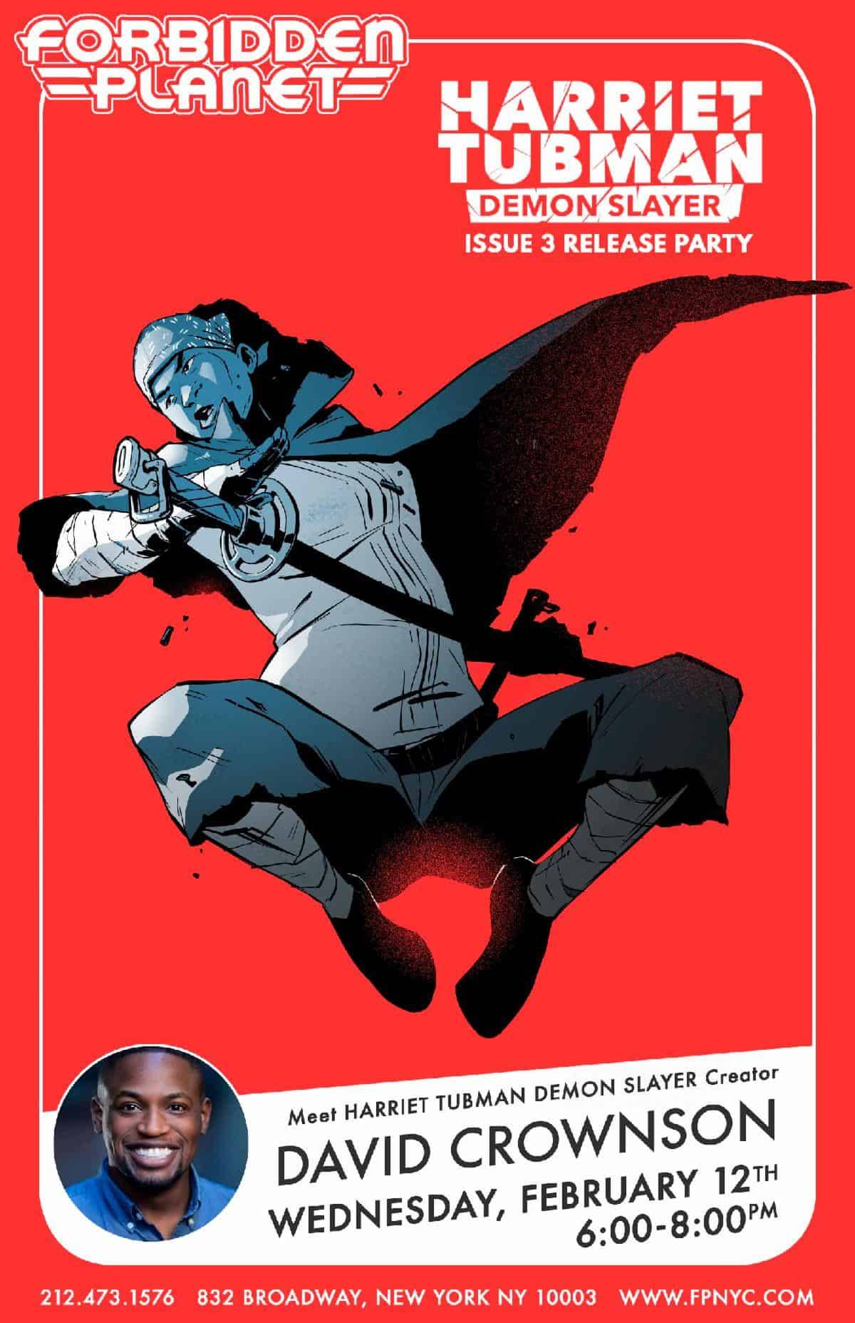 David Crownson appears at Forbidden Planet on Wednesday, February 12, 2020 at 6 PM to sign Harriet Tubman: Demon Slayer #3.