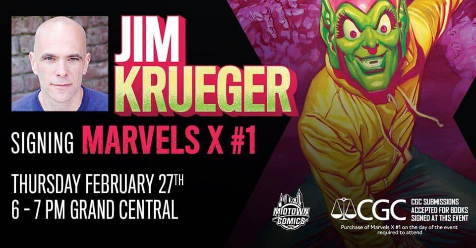 Writer Jim Krueger signs MARVELS X #1 at Midtown Comics Grand Central on Thursday, February 27th from 6 PM – 7 PM.