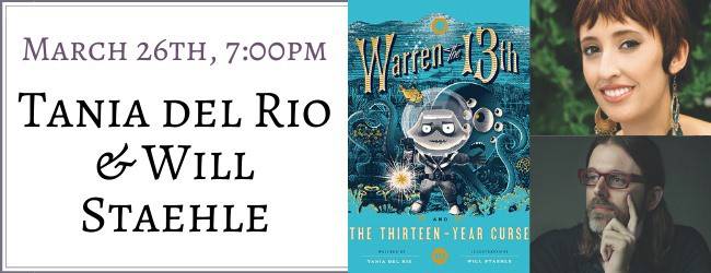 Tania del Rio and Will Staehle appear at Mysterious Galaxy on Thursday, March 26, 2020 at 7 PM to sign Warren the 13th and the Thirteen-Year Curse.