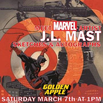 Artist J.L. Mast appears at Golden Apple Comics on Saturday, March 7th at 1 PM.