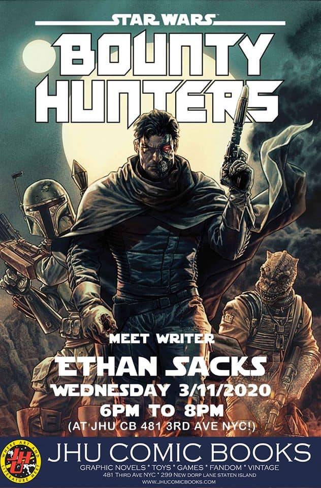 Writer Ethan Sacks (Old Man Quill, Star Wars: Galaxy’s Edge, Old Man Hawkeye) appears at JHU Comic Books to sign Bounty Hunters #1 on Wednesday, March 11, 2020 at 6 PM!