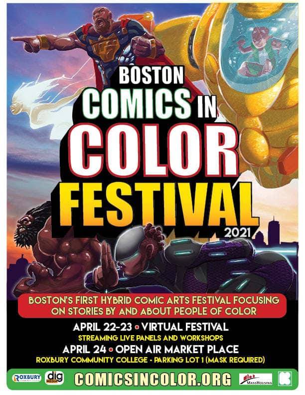 Boston Comics in Color Festival (BCICF) is New England’s first comic arts festival focusing on stories by and about people of color. This three-day event is a convening of artists from Boston and beyond, who represent a broad spectrum of disciplines and backgrounds, and share creative work and thinking about the world of comics and comics-related culture. BCICF 2021 features artists ranging from award-winning comic creators already established on the national stage — most notably Keith Knight, considered the world’s foremost gentleman cartoonist — to up-and-coming talents emerging in the local and regional arena.