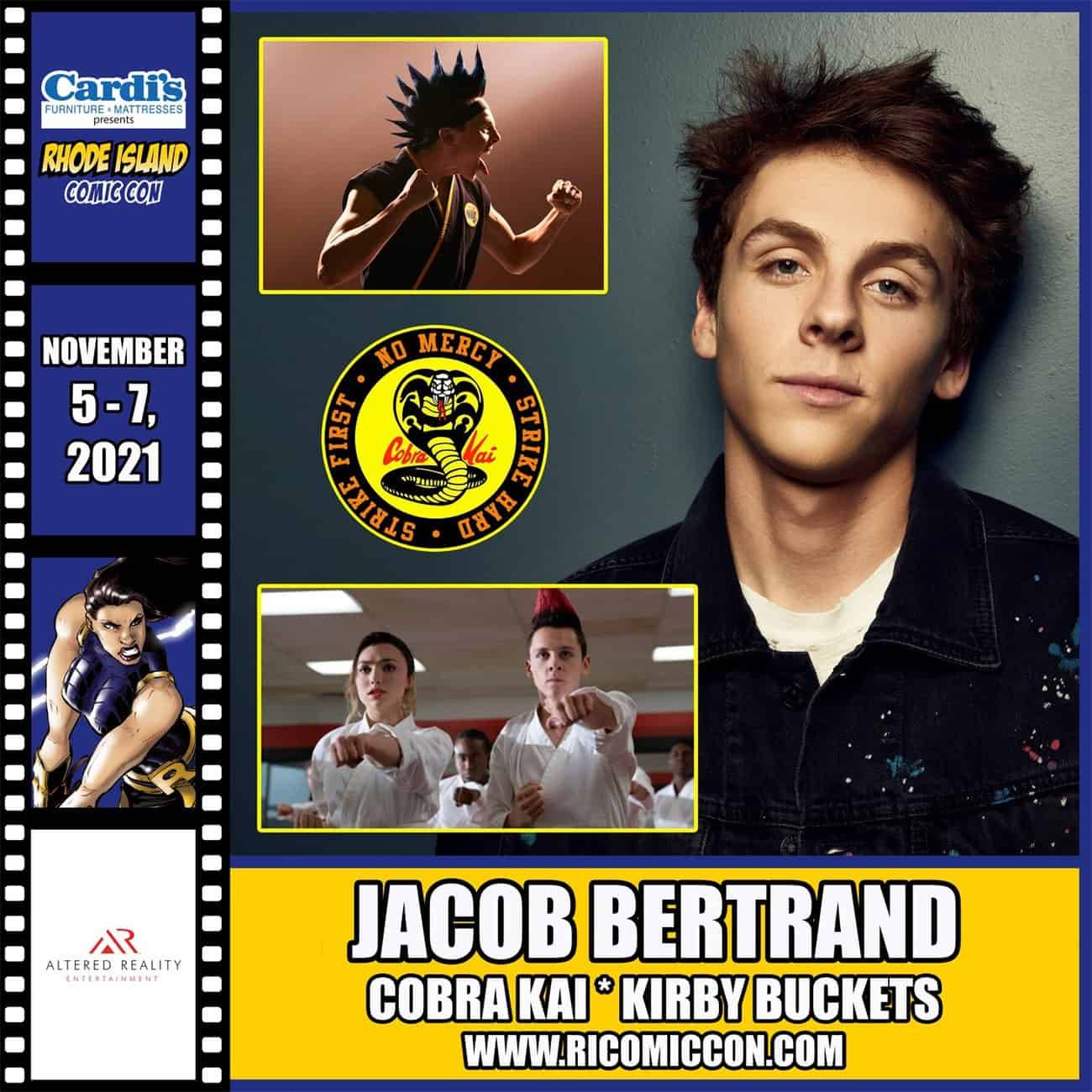Please welcome Jacob Bertrand to Rhode Island Comic Con, presented by Cardi’s Furniture & Mattresses, November 5-7, 2021 at the Rhode Island Convention Center and Dunkin’ Donuts Center Providence! Buy tickets at www.ricomiccon.com!