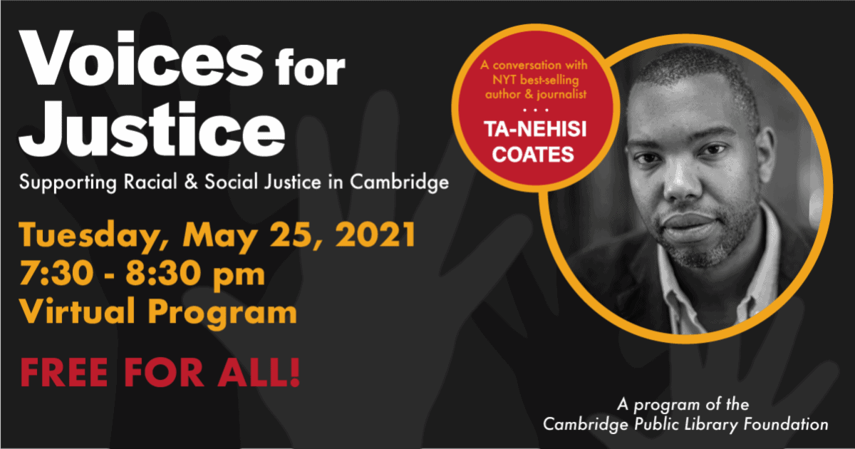 It is our pleasure to announce that registration is now open for the the third and final event in the Cambridge Public Library Foundation’s Voices for Justice series.
