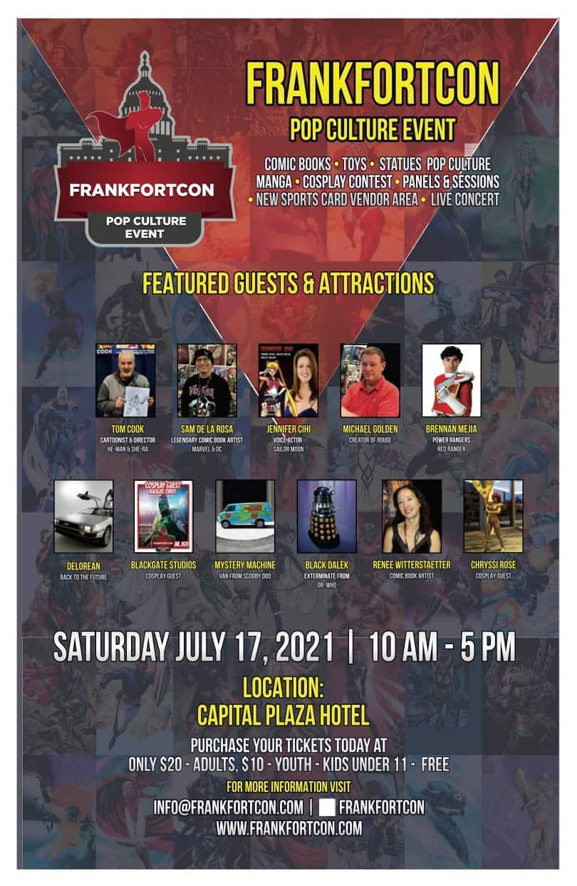 | It’s a collectors mecca convention located in beautiful Capital City of Frankfort, Kentucky. The FrankfortCon strives to be Kentucky’s best and truest comic con featuring fandoms of multiple genres. As long-time fans of comic books, toys, pop-culture, sports cards, manga/anime, wrestling, gaming, cosplay, animation, sci-fi and fantasy, the promoter wanted to bring that style event to Kentucky. | |