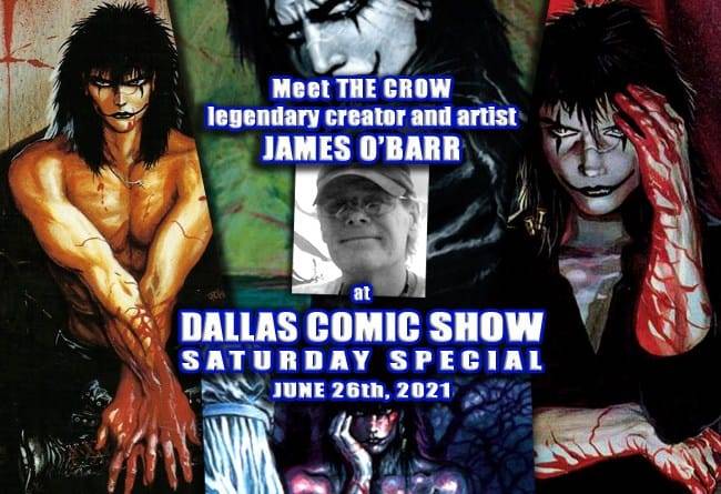 We’re excited to announce that the one and only James O’Barr will once again be attending Dallas Comic Show as a special guest at DALLAS COMIC SHOW’s Saturday Special this June 26th, 2021 at Music City Mall in Lewisville, TX. James is the highly-respected creator and artist of THE CROW comic book series, which has spawned four movies and a television series, statues and action figures. In 2019 we celebrated the 25th Anniversary of THE CROW movie starring Brandon Lee, and the character and comic book’s 30th Anniversary with a special appearance and screening of the movie with James, so if you missed out on that show, make sure to come see him this time! A new big screen reboot is also said to be on its way. We’re always honored to have Mr. O’Barr on the guest list for our events, so please make an effort to swing by his booth and say hello.