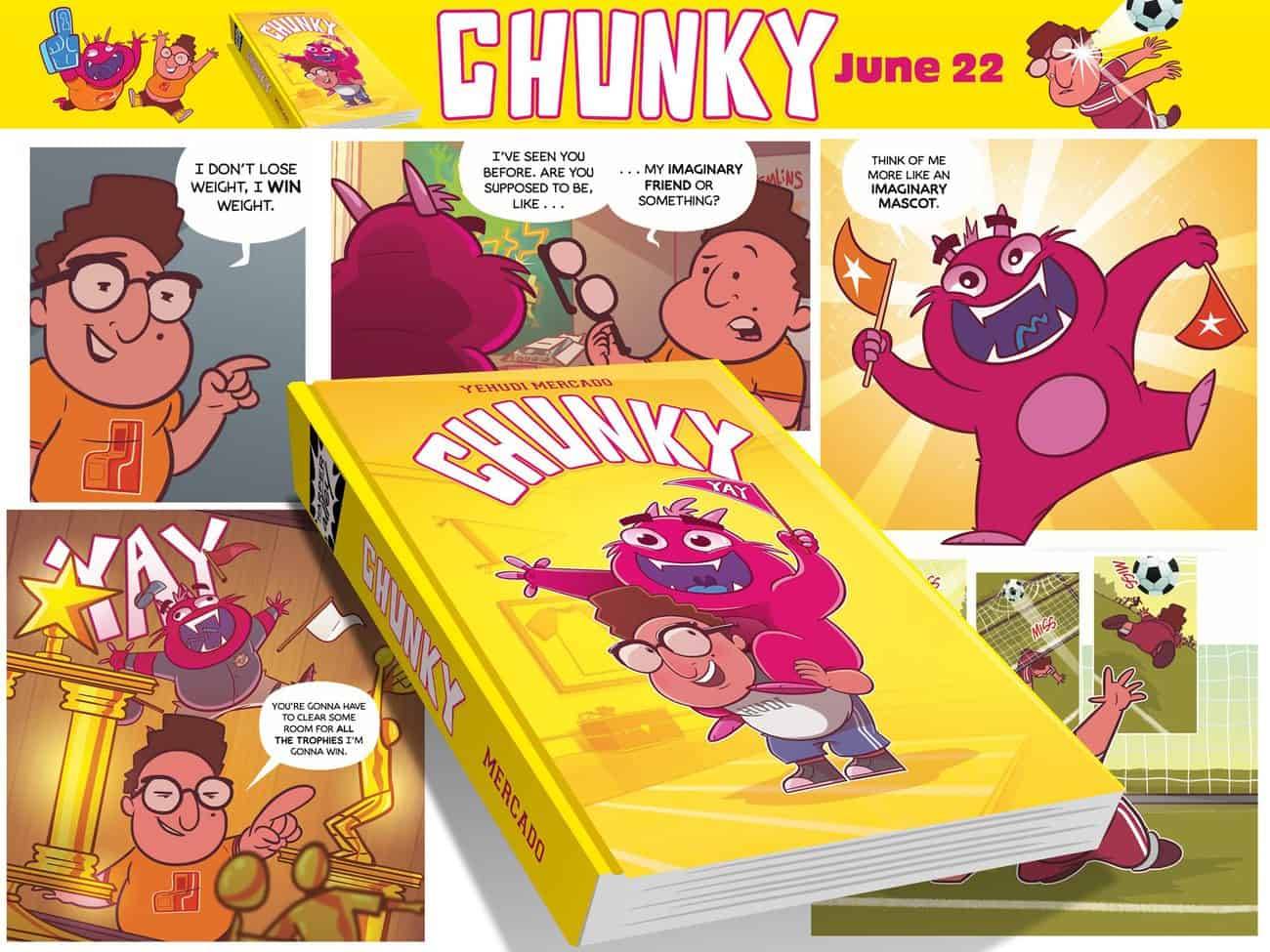 Meet author/illustrator/animator Yehudi Mercado at Earth-2 Comics and get a signed copy of his terrific new graphic novel CHUNKY on Saturday August 14th from 11:30am-12:30pm for Free Comic Book Day.