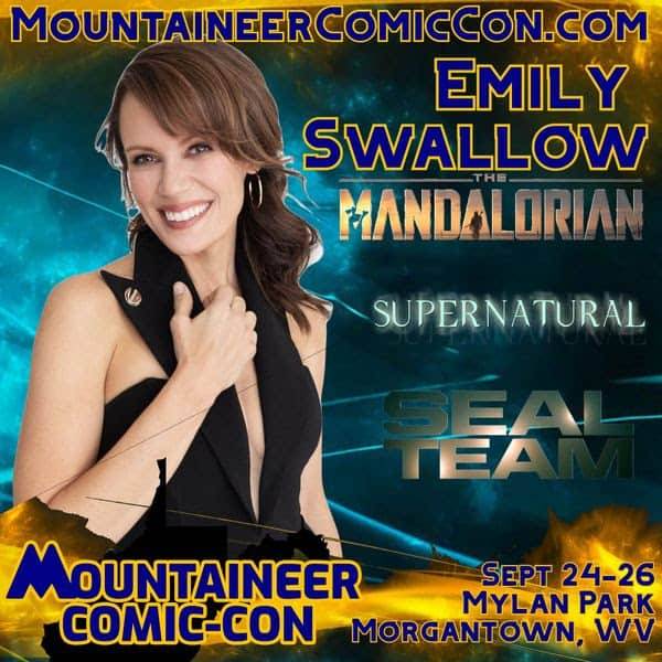 Emily adds the Star Wars universe, back to Mountaineer Comic-Con, after early cancellations. Along with her credits on The Mandalorian, she portrayed ‘The Darkness,’ or Amara, the sister of God, on Supernatural.
