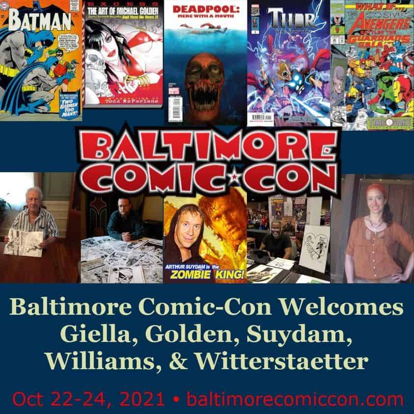 The Baltimore Comic-Con returns to the Inner Harbor this October 22-24, 2021 at the Baltimore Convention Center. The Baltimore Comic-Con is pleased to announce Joe Giella, Michael Golden, Arthur Suydam, Keith Williams, and Renee Witterstaetter’s attendance at this year’s event. Tickets are on sale now!