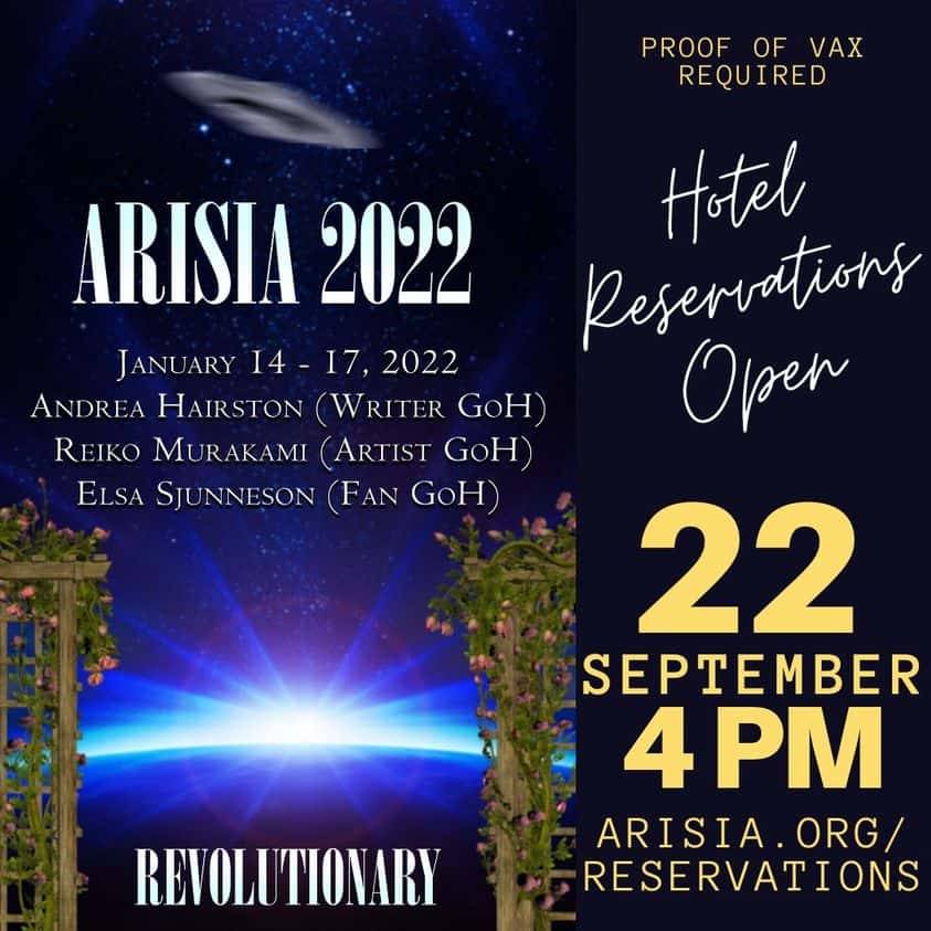 Hotel reservations will open on Wednesday, September 22 at 4 pm EST for Arisia 2022. Please visit our Hotel Reservation webpage for the appropriate links when they become active.