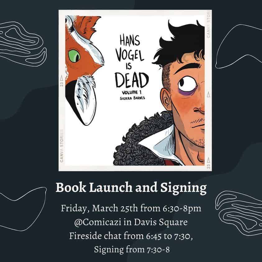 Join us for the book launch of HANS VOGEL IS DEAD by Sierra Barnes — our first in-person creator event of 2022!