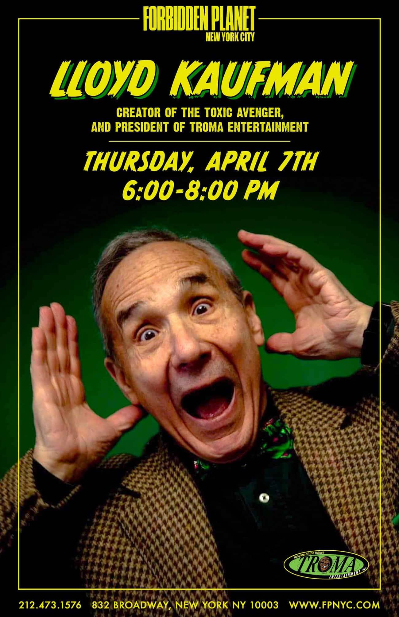 Come down to FPNYC on April 7th between 6 and 8PM to meet Lloyd Kaufman, creator of the Toxic Avenger and president of Troma Entertainment.