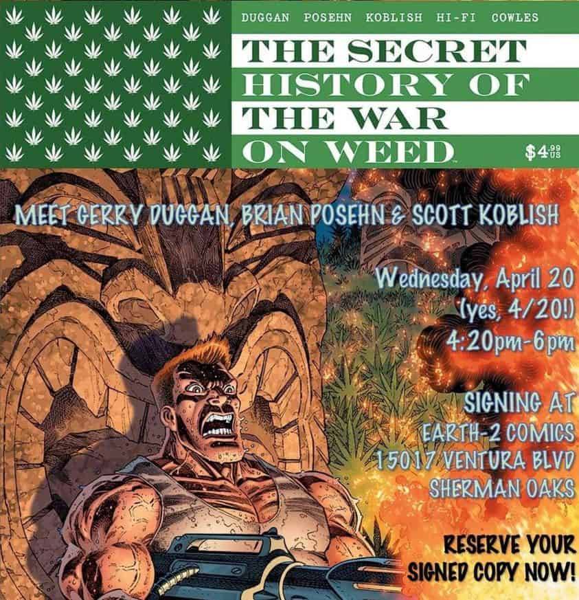 Gerry Duggan, Brian Posehn, Scott Koblish appear at Earth-2 Comics to sign The Secret History of The War on Weed on April 20th at 4:20pm!