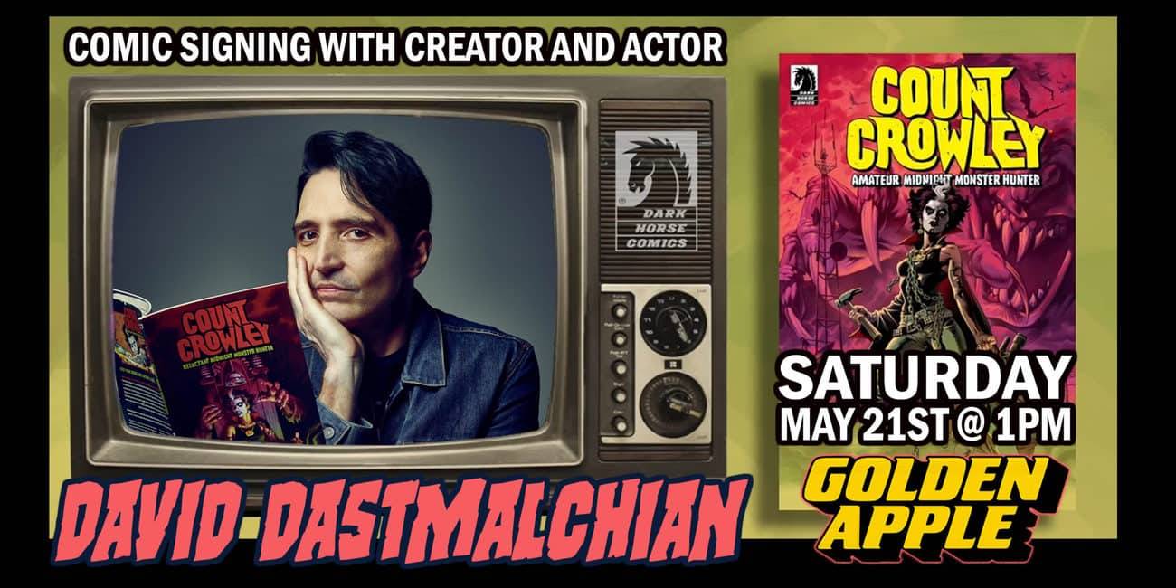 His Dark Horse Comic series Count Crowley: Amateur Midnight Monster Hunter is on it’s second series and issue #2 is coming out in time for this live meet & greet. FREE Autographs on all comics books and trade paper backs of Vol. 1.